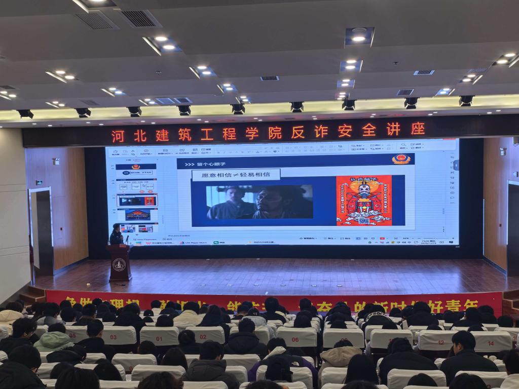 12月19日下午,校安全工作处联合驻校民警,邀请张家口市公安局经开公安分局刑警大队反诈中心民警进校园,在新能源报告厅为全校师生送上一堂生动的反诈“必修课”。