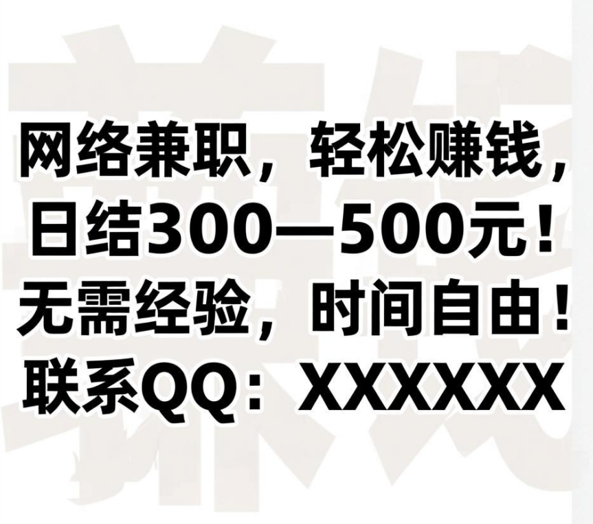 在高校中,不少学生希望通过兼职来赚取一些额外的生活费,小李就是其中之一。某天,小李在学校的公告栏上看到了一则看似诱人的兼职广告:“网络兼职,轻松赚钱,日结300—500元!”心动不已的小李立刻按照广告上的联系方式,添加了对方的QQ号。