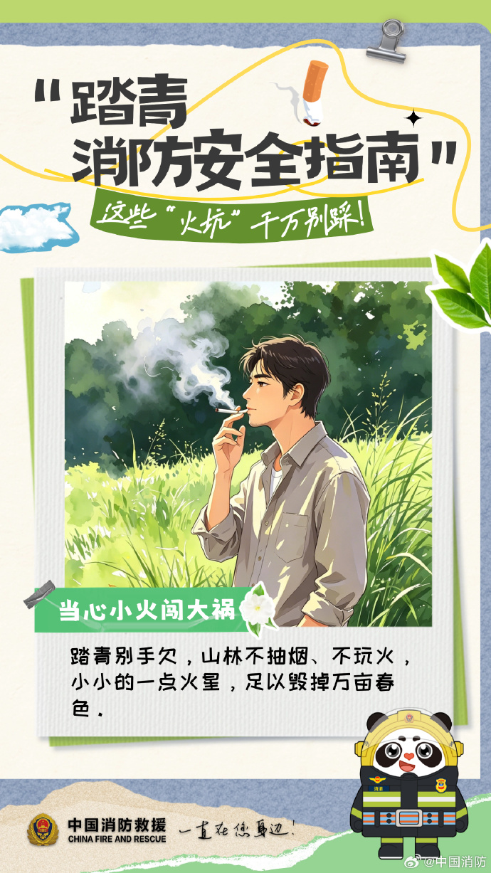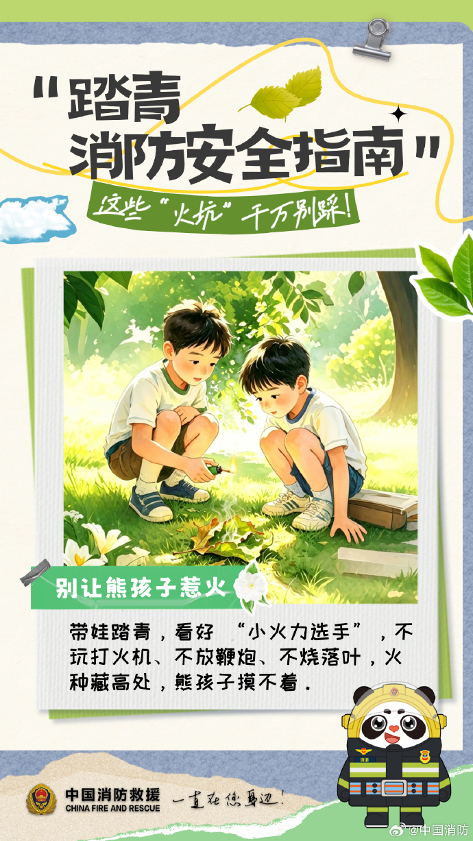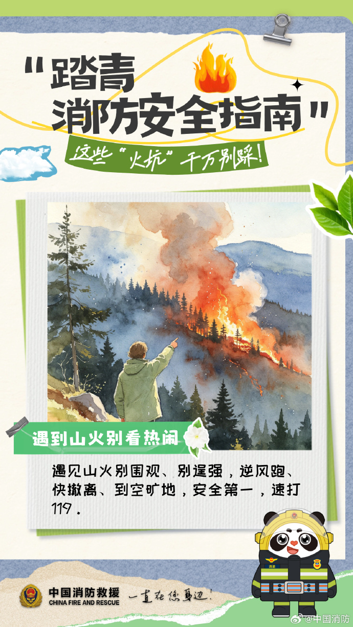 春天到了,谁不想出门撒欢?但这些安全“雷区”千万别碰!山林别抽烟、野炊只去指定区、看好熊孩子别玩火,遇到山火别围观,逆风快跑打119!春风伴出游,防火伴你行,平安踏青才是真快乐~